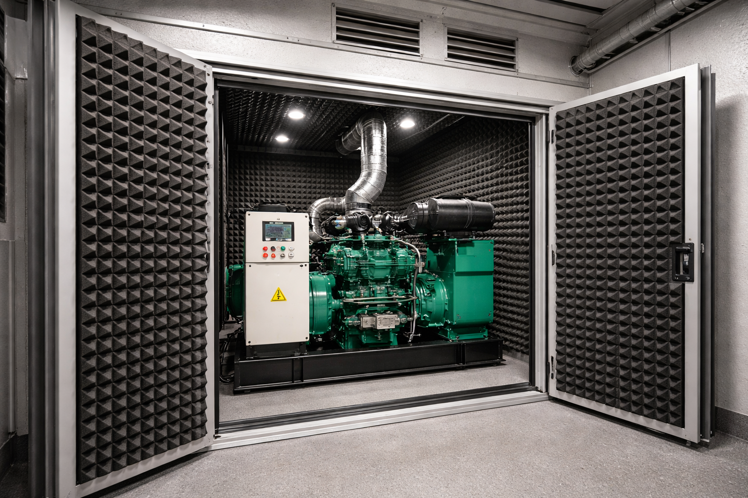 Bazı durumlarda jeneratörün etrafına özel ses yalıtım kabinleri uygulanarak ses kaynağı doğrudan izole edilir çünkü bu yöntem en yüksek performans sağlayan çözümlerden biridir. Sound Akustik bu katmanların tamamını doğru şekilde planlayarak sistem bütünlüğünü sağlar ve maksimum verim elde edilmesini hedefler.